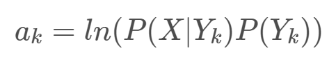 그러면 k번째 class에 관한 우도와 Prior의 곱을 다음과 같이 $a_k$로 정의하자.