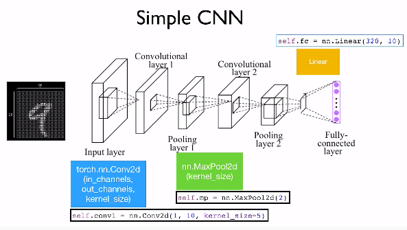 self.conv1 = nn.Conv2d(1, 10, kernel_size=3)