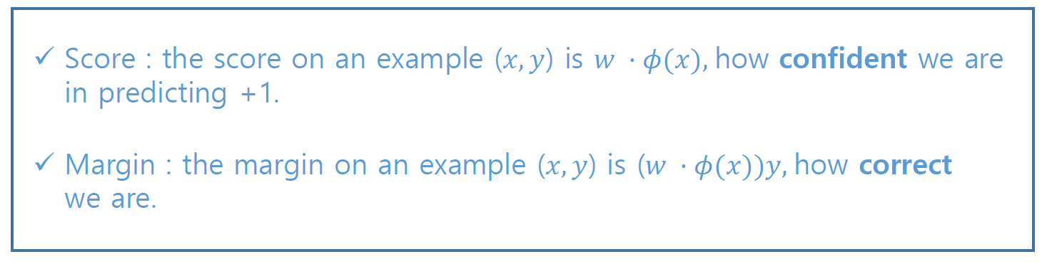 Margin의 경우 y와 Score가 같은 경우는 양수를 가지게 되고, 아닌 경우에는 음수를 가진다.