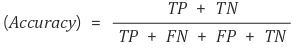 마지막으로 Accuracy는 False를 False라고 옳게 예측한 것의 비율도 따지는 것으로 수식은 아래와 같다.
