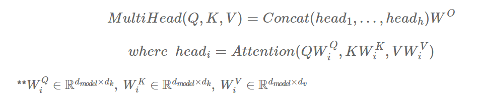 이후 각 병렬 처리된 결과는 Concat한 후 W라는 가중치 vector를 통해 lienar transform되어 원하는 차원으로 변환하여 이용된다.